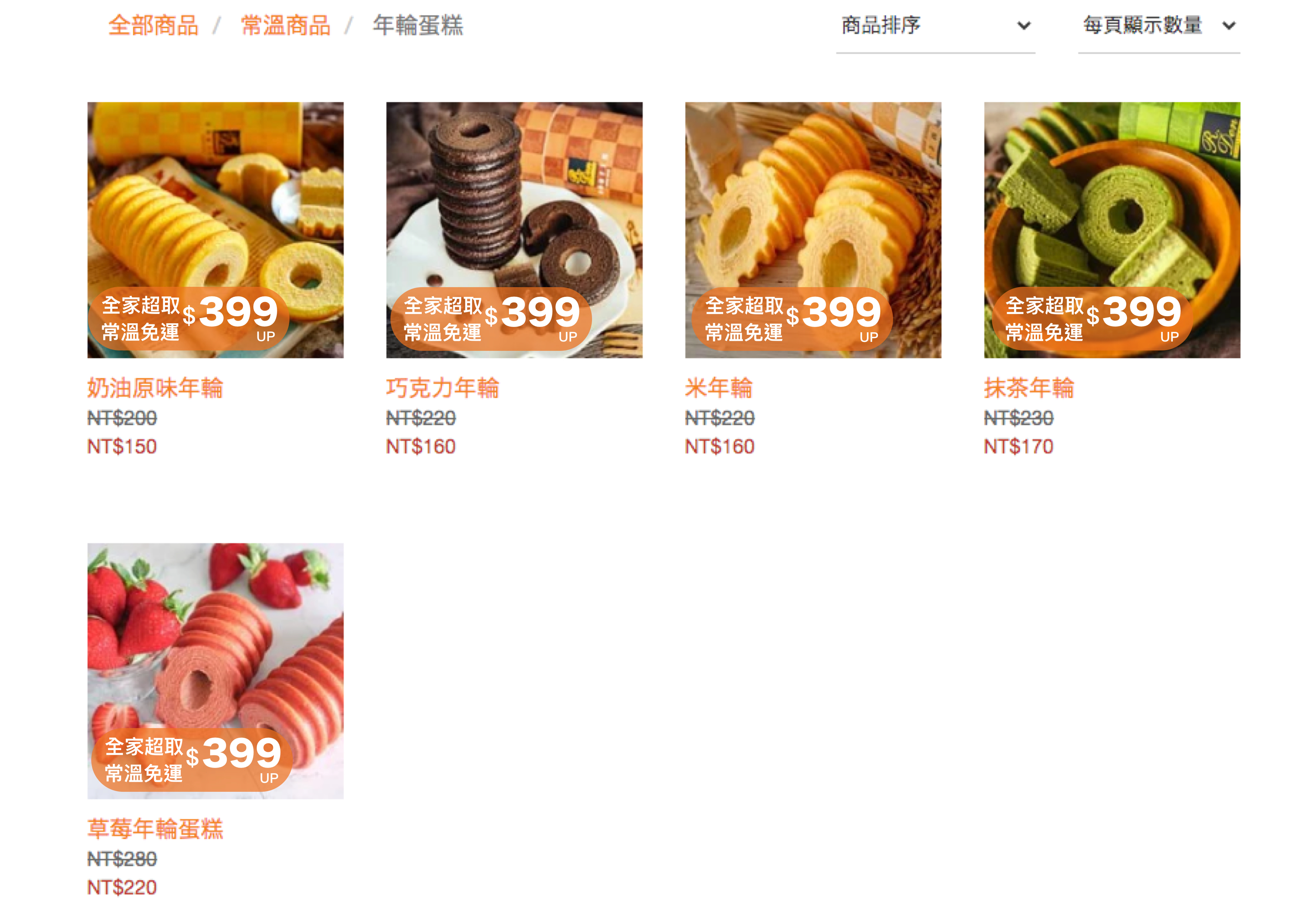 全家超商取件39元運費,限定一箱總共8條(年輪/蜂蜜蛋糕)