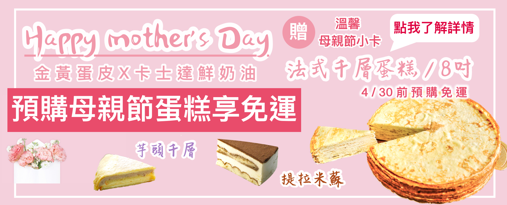 一年一度的感恩母親節蛋糕預購開跑囉!為了感謝母親,媽媽,媽媽的媽媽,亞典推出最合適當母親節蛋糕的「經典奶油千層」、「提拉米蘇」、「芋頭千層」通通免運費哦!幫您把愛心送到家。亞典提醒您,不要忘了加入會員領取您的購物金哦!
